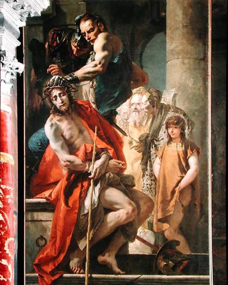 Då förde ståthållarens soldater Jesus till residenset och samlade hela vaktstyrkan omkring honom. De tog av honom kläderna och hängde på honom en röd soldatkappa och vred ihop en krans av törne och satte den på hans huvud och stack en käpp i högra handen på honom. Sedan föll de på knä för honom och hånade honom och sade: ”Leve judarnas konung.” De spottade på honom och tog käppen och slog honom i huvudet. Och när de hade hånat honom tog de av honom kappan och satte på honom hans egna kläder och förde bort honom för att korsfästa honom.